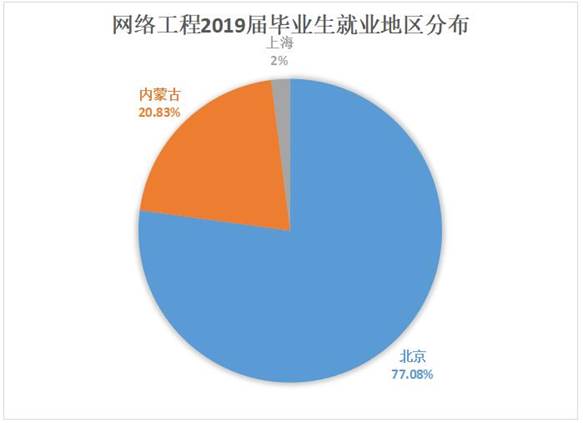 从数据统计表可以看出,网络工程专业毕业生主要就业地区为北京和内蒙古。其中,就职北京的毕业生占全部就业毕业生的77.08%。