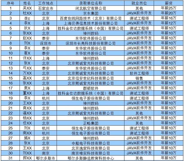 五、部分就业情况名单