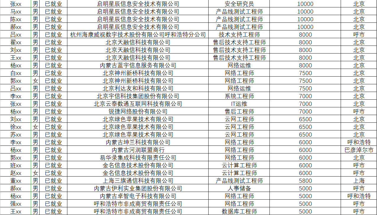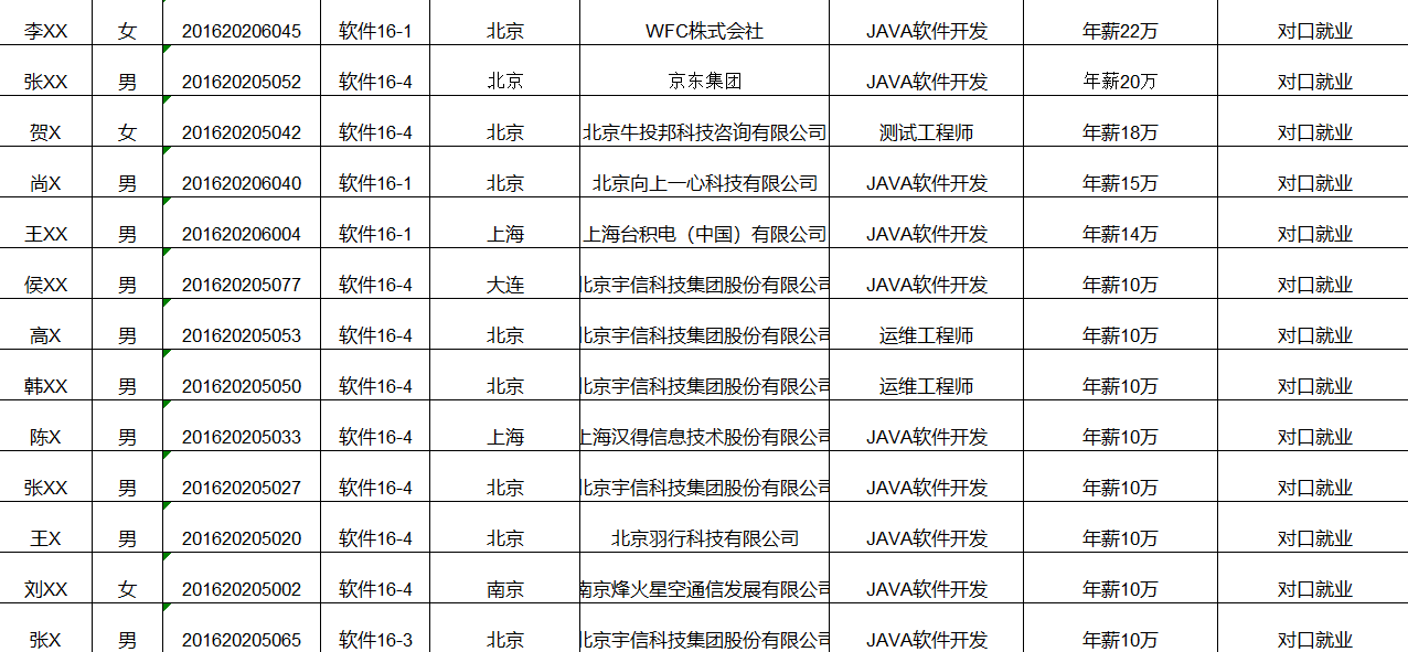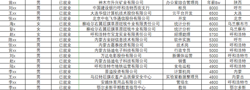 五、部分就业情况名单