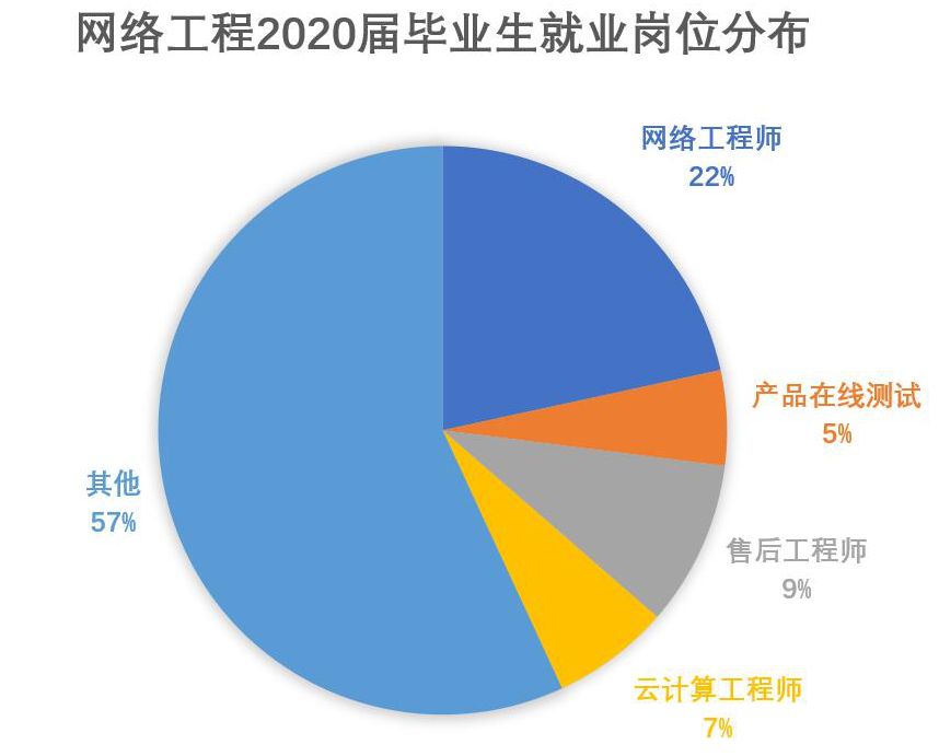 毕业生就业岗位分布反应了市场人才需求的变化,是公司重视的方向,也可以让我们前瞻近几年就业情况的依据。从2020届网络工程毕业生就业岗位分部表格上可以看出,主要就业岗位为网络工程师,售后工程师以及云计算工程师等技术支持岗位。