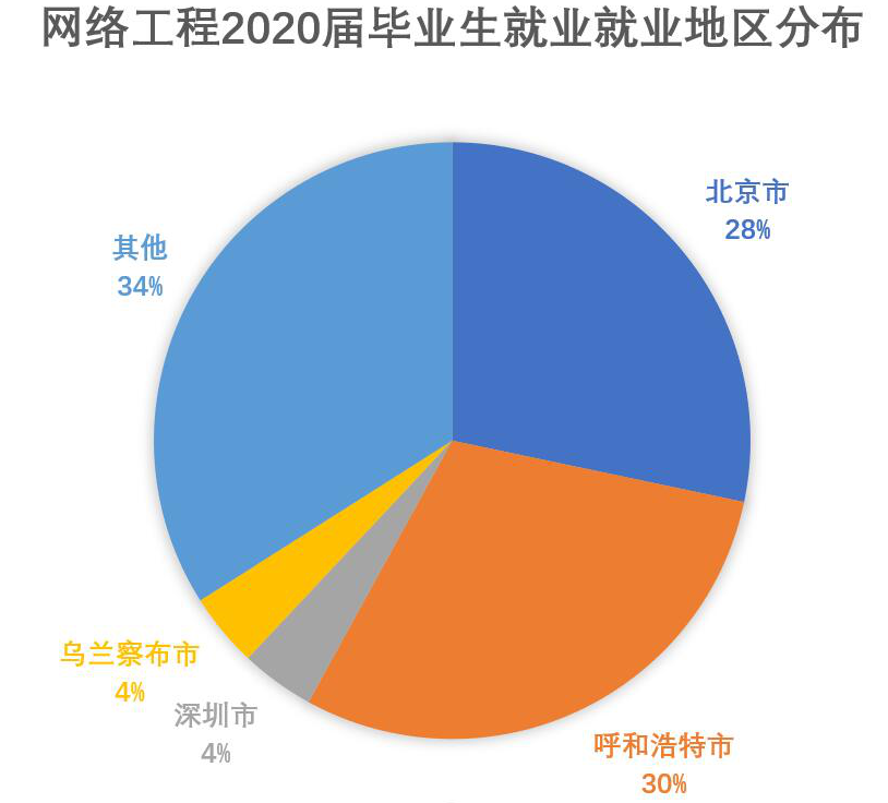 从数据统计表可以看出,网络工程专业毕业生选择主要选择在北京和内蒙古就业。其中,就业于北京的毕业生占比28%。