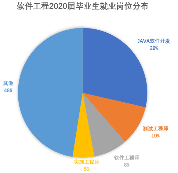 毕业生就业岗位的变化反应了市场的需求,也是专业选择和人才培养方向的重要依据。就去年相比,软件工程2020届毕业生主要就业岗位还是JAVA软件开发、软件测试方向,但占比明显下降,大数据等热门行业就业分步有所上升,前景可待。
