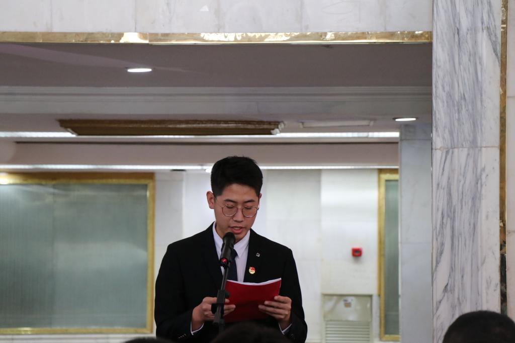 紧接着,在校生代表软件18-4班郭鑫4宇和新生代表数据20-2班王浩楠同学分别发言,号召同学们学会坚韧与执着,利用好公司提供的平台,努力学习,积极的提升自己,在学习中、工作中、实践中培养自己的创新、协作、沟通、管理等方面的能力,为自己的老员工活规划出完美的蓝图。