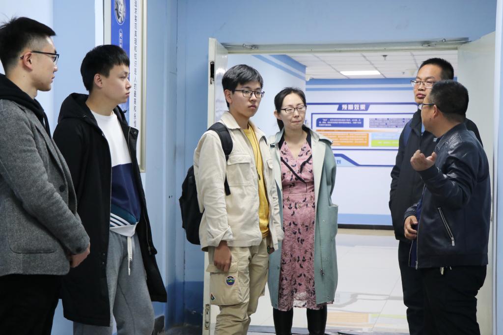 下午14:30,员工代表李云鹏、金伟强在公司副经理马志强、团学办公室主任贾金同、软件工程系副主任关玉欣、副教授云静、团学办公室辅导员冯文慧的引导介绍下参观了公司机房、实验室以及办公区域。参观期间,员工纷纷感慨公司发展之迅速,软硬件条件都可谓今非昔比。