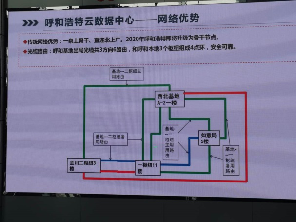 在内蒙古联通呼和浩特数据中心,工作人员对数据中心的园区布局进行了描述,并对数据中心的服务对象、网络优势、支撑业务及服务范围进行了介绍。此外,还现场讲解了数据中心机房设计的方式及对于机房能耗及温控的考量。之后研究生参观了数据中心的温控、能耗管理基础设施。