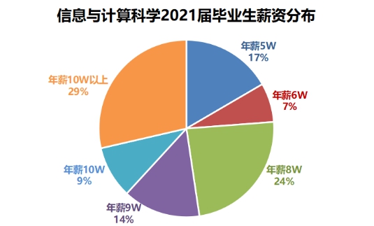 收入水平方面,2021届信息与计算科学专业毕业生较往年整体呈上升趋势,到目前为止,43位已就业毕业生中有16位毕业生年薪超过10万元,高薪就业率达到38%。