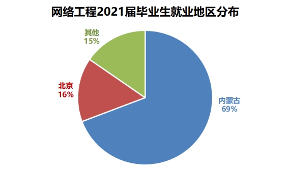 从就业地区分布图中可以看出,2021届网络工程专业毕业生主要选择在内蒙古和北京就业,其中,就业于内蒙古的毕业生占比达69%。