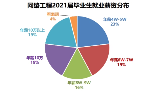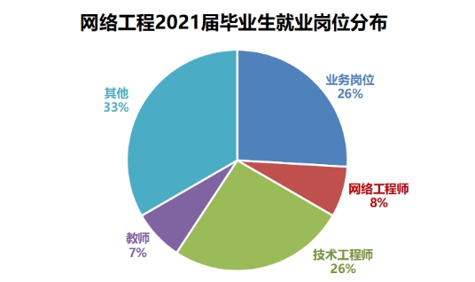 从就业岗位分布图上可以看出,2021届网络工程毕业生主要就业岗位为技术工程师、网络工程师等技术支持岗位。