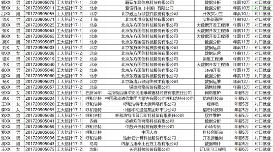 截至2020年12月31日,2021届软件工程专业预计毕业142人,暂不就业6人(拟升学、拟考公务员),有就业需求的136人,目前已有133人就业,其中43人高薪就业。实际就业率为93.66%,对口就业率为98.50%。