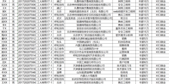 截至2020年12月31日,网络工程专业预计毕业72人,暂不就业24人(拟升学、拟考公务员),有就业需求的48人,目前已有27人就业,其中11人高薪就业。实际就业率为37.50%,对口就业率为98.50%。