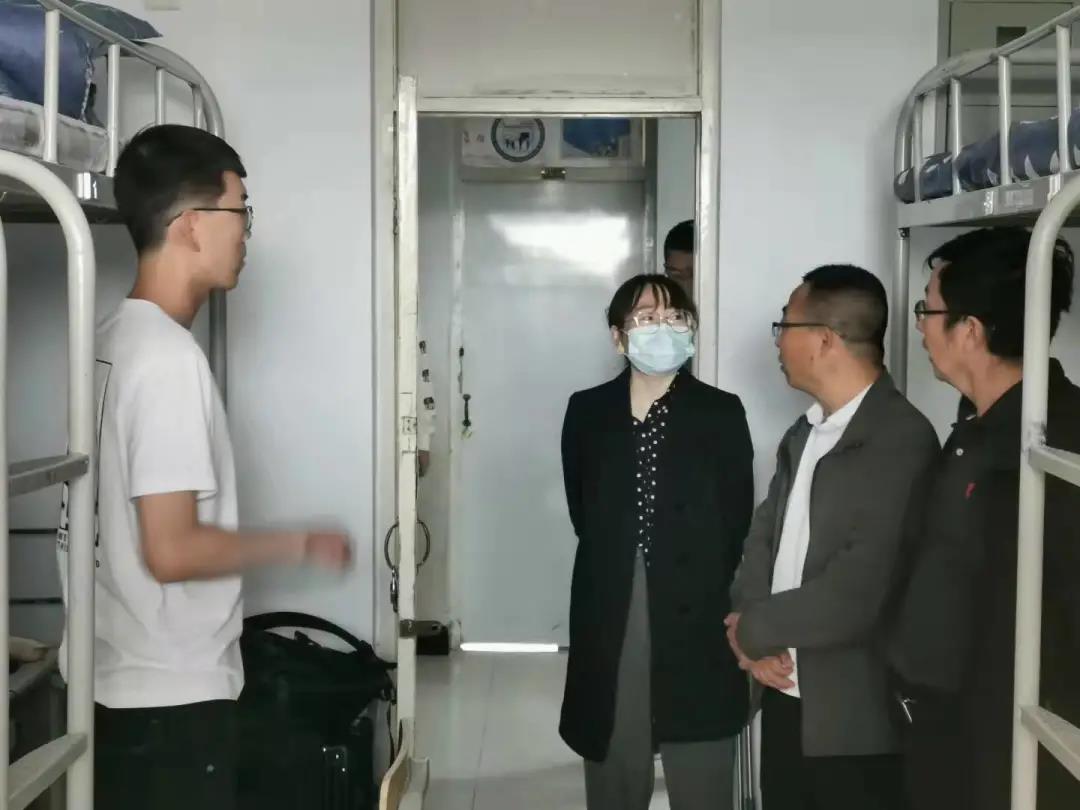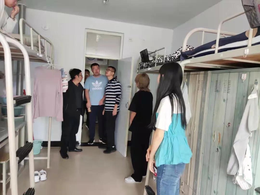 为掌握员工思想动态,更好的帮助2021级新生适应住宿的环境,加强公寓安全隐患排查力度,9月5日下午,刘利民经理,团学办公室主任贾金同老师,团总支书记张斌斌老师以及四位新生班主任共同前往新生宿舍进行实地走访。
