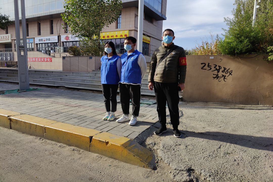 师生志愿者们分别在公司北门,小吃街等位置站岗,保证了同学们宿舍-公司两点一线的行动路线,最大程度上杜绝同学们与外界的接触,从而保障了大家的安全。他们引导着来往的同学们,提醒进入公司的同学们出示校园卡和健康码。秋风萧瑟中,坚毅忙碌的身影仿佛守护公司安全的战士。