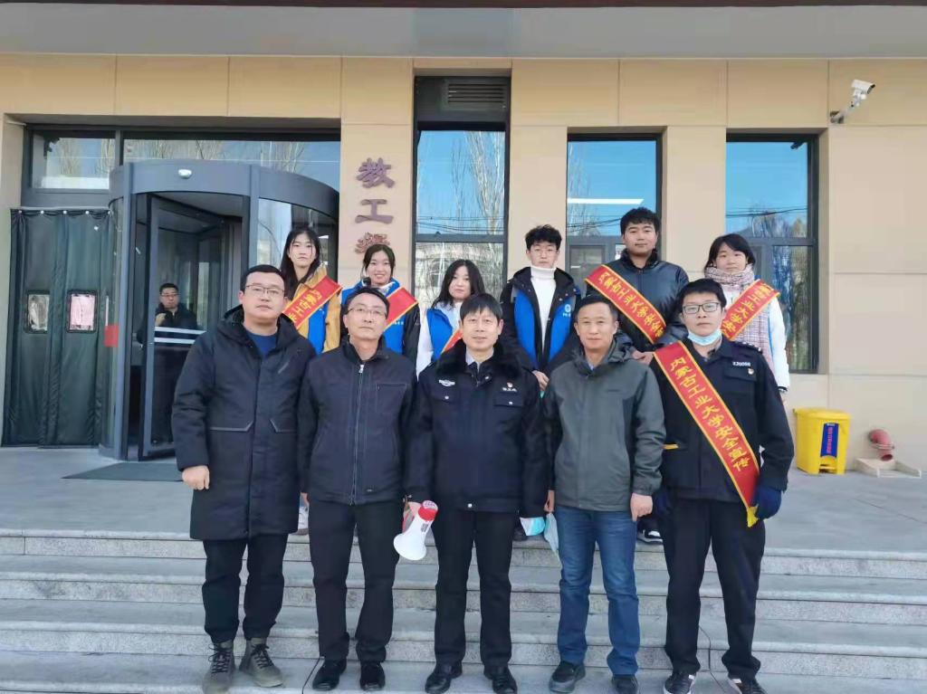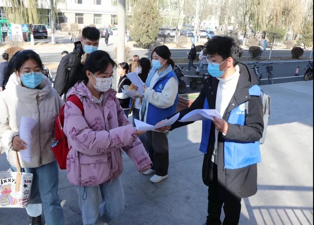 11月8日上午,师生志愿者在男生宿舍楼下、校园门口、小吃街门口等地派发安全教育传单,向同学们科普安全知识,提醒同学们提高安全防范意识。