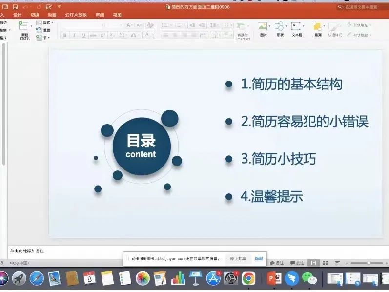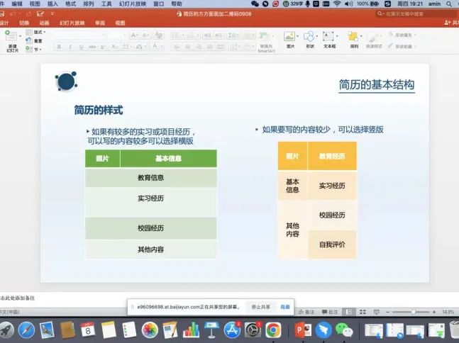 本次讲座主讲师王亚峰拥有丰富的一线开发和数据分析工作经验,拥有多年校园招聘经验,对毕业生职业生涯规划有实践经验。讲座从如何写一份简历展开,详细介绍了简历结构、简历容易犯的小错误、简历的技巧三个方面。在写简历过程中要注意个人详细信息、求职意向、教育背景、个人经历、专业技能等方面的信息填写。注意简历的排版布局简洁明了,注意简历的格式和表达、简历的照片。注意简历中的错字以及内容遗漏。简历的格式尽量使用PDF格式,注意简历发送方式,发送时一定要规范简历文件名字。
