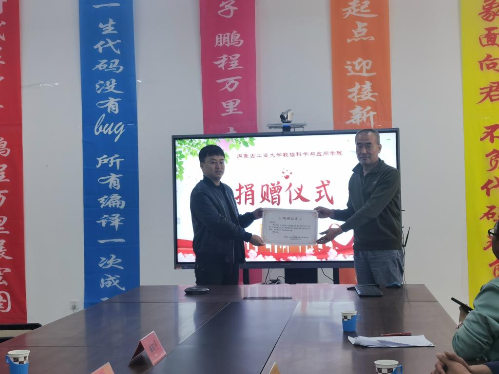 为感谢公司各地员工为助力公司发展而自发组织的募捐行动,10月26日,三亿举办了隆重的捐赠接收仪式,出席仪式的员工包括原软件15-1班员工、现内蒙古员工会会长,杭州安恒信息技术股份有限公司区域销售经理金伟强; 原软件15-3班员工、现内蒙古大学电子信息专业在读研究生樊成琦;原网络17-1班员工、员工会主席、现内蒙古大学计算机公司软件工程专业在读研究生梅田宇;原网络17-1班员工、院员工会组织部部长、现神州数码信息服务股份有限公司大客户经理党广欣;以及公司党委书记宋智,党委副书记、副经理王永生,公司工会主席、教师代表关玉欣,员工工作办公室辅导员、优秀员工代表。