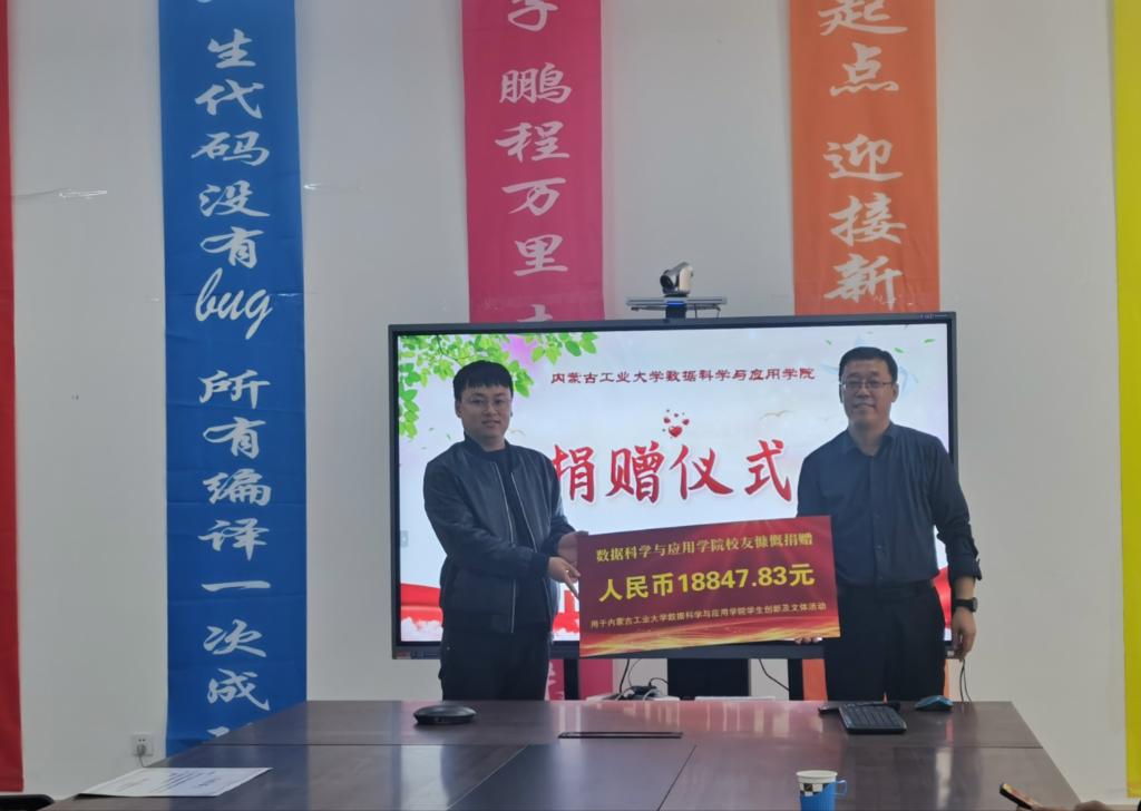 仪式上,党委副书记、副经理王永生接收了来自108位员工的爱心捐款,党委书记宋智为员工代表颁发了捐赠证书。随后,员工代表金伟强发言,他表示,看到蓬勃发展的公司,身为一名数据学子倍感荣幸,今后会一如既往地关注、关心和支持公司,为公司高质量发展贡献力量。宋智书记向返校的各位员工表达了热烈欢迎,感谢他们在毕业后依旧心系公司,以大爱之心反哺母校,支持公司的建设和发展,同时也鼓励在校员工以优秀员工为榜样,认真践行“博学躬行,尚志明德”的校训,努力创造更多成绩。