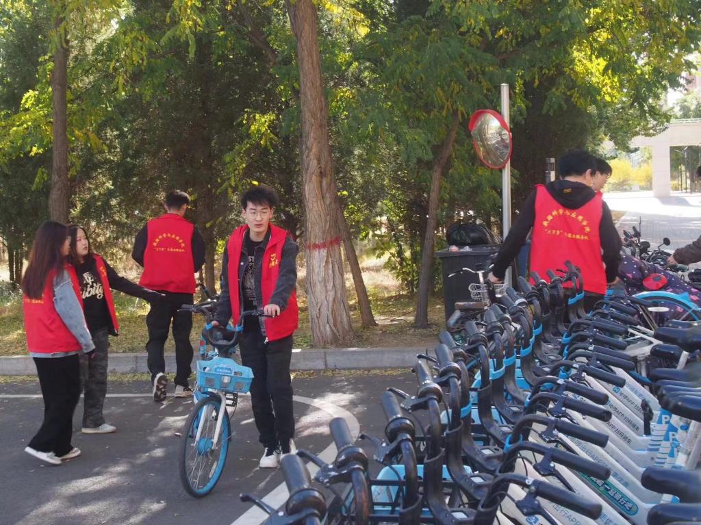 活动中,志愿者和工作人员们在校园的各个停车点建立志愿服务点,摆放未按要求停放的自行车,同时,志愿者们还在校园内倡导文明骑行,提醒同学们在校园内要遵守规定,不乱停乱放,共同维护校园秩序。最后,在志愿者和工作人员们的努力下,校园内整齐摆放的自行车成为了校园里一道靓丽的风景线。