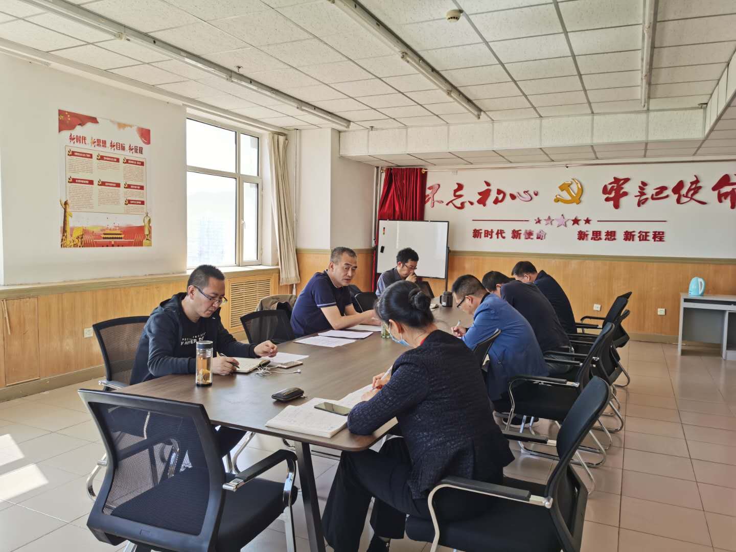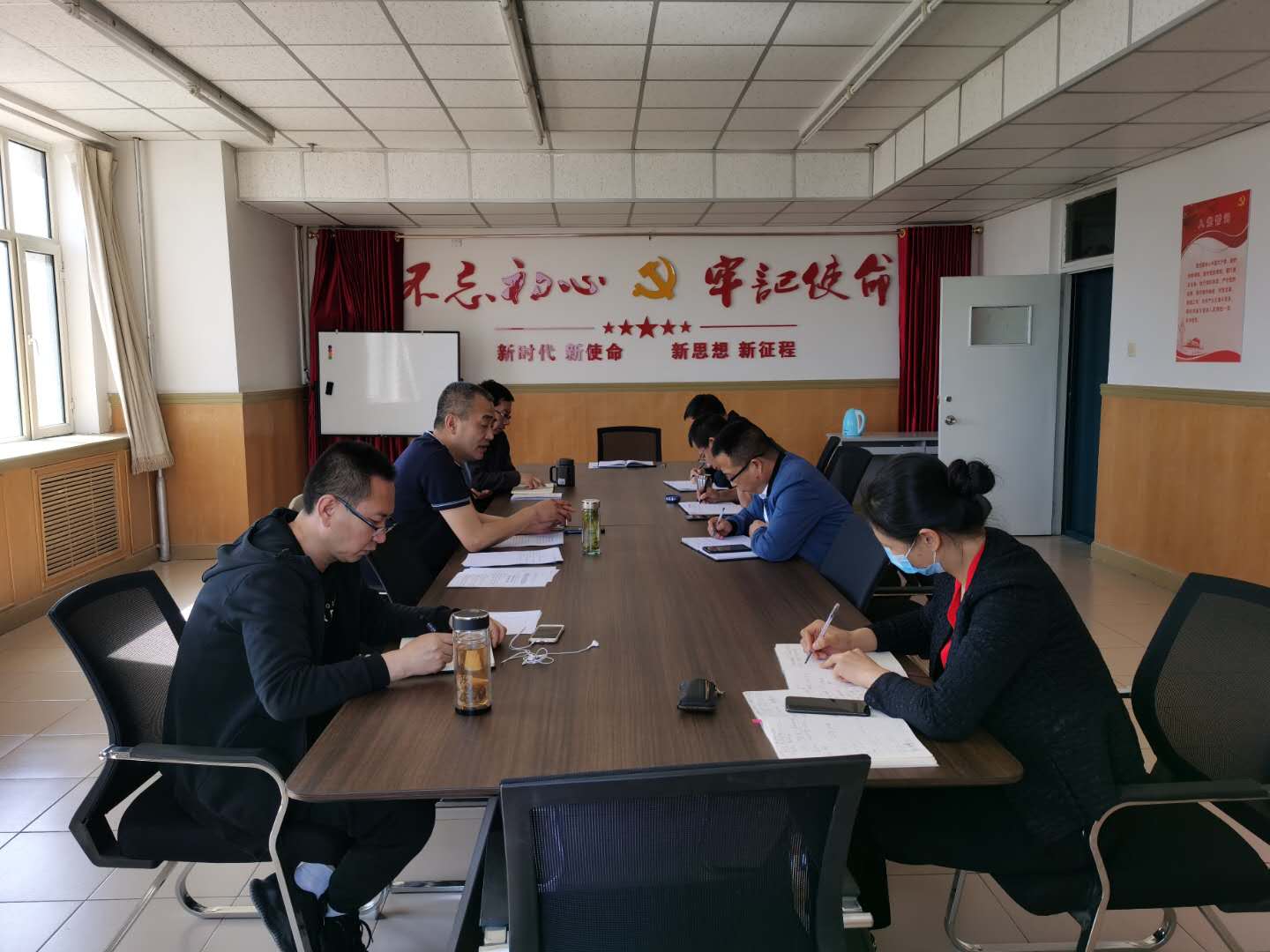 2020年5月28日下午,数据科学与应用公司党总支理论学习中心组集体学习在金川校区电力大楼1404会议室召开,会议由公司党总支书记宋智主持,公司党总支中心组成员刘利民、郭鹏、马志强、田永红、贾金同、李志远参加学习。