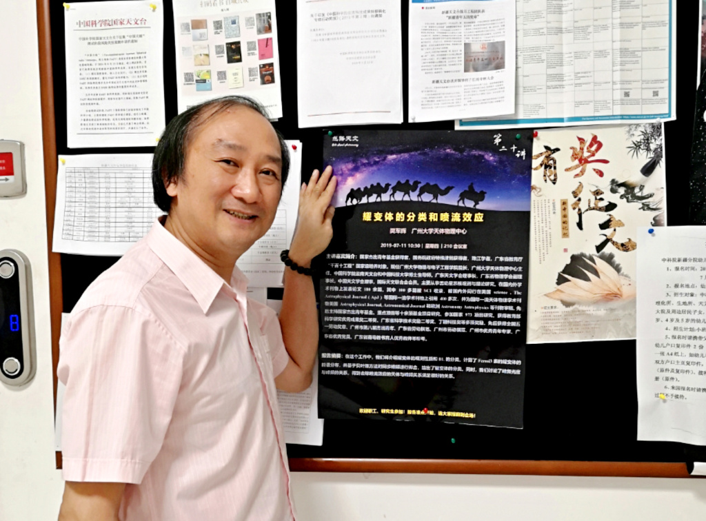 1994年,年仅29岁的樊军辉在系领导和公司的支持下,在广州大学创建天体物理研究中心。研究中心在成立之初就遇到了不少困难:外界的质疑,基础设备的不完善……面对阻挡在眼前的困难,樊军辉没有却步,相反更加坚定“一定要把天文学科做好”的决心。