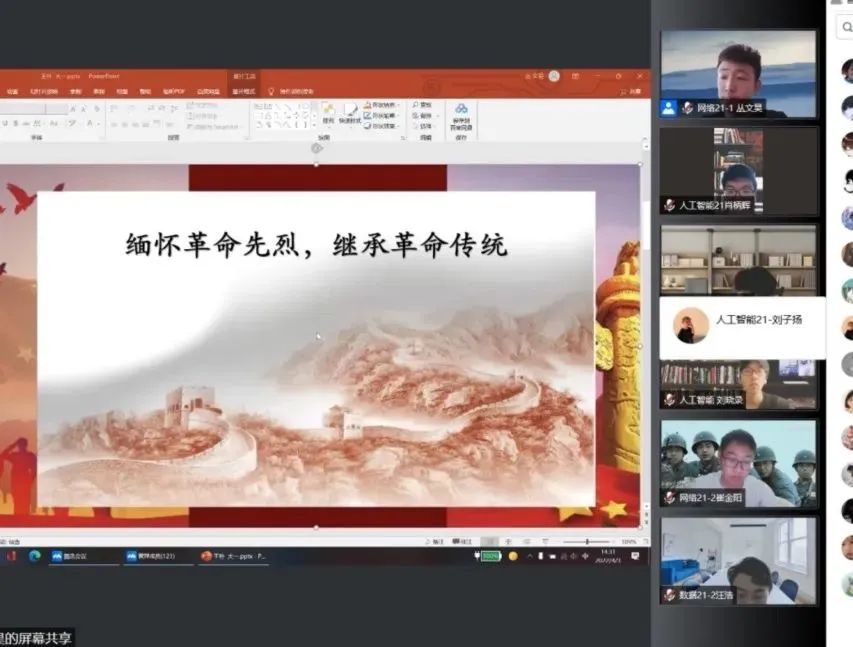 为引导公司员工继承先烈遗志,珍惜幸福生活,立志报效祖国,不断增进广大青少年爱党爱国情怀,不断铸牢中华民族共同体意识,增强对伟大祖国,中华民族,中华文化,中国特色社会主义的认同,4月3日14:30,公司组织20、21级员工通过腾讯会议形式开展“缅怀革命先烈,继承革命传统”纪念活动。