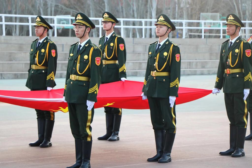 雄壮的国歌奏起悦耳的音符,鲜艳的五星红旗冉冉升起,全体师生面向国旗行注目礼,齐声高唱国歌,爱国之情在大家心中激荡。