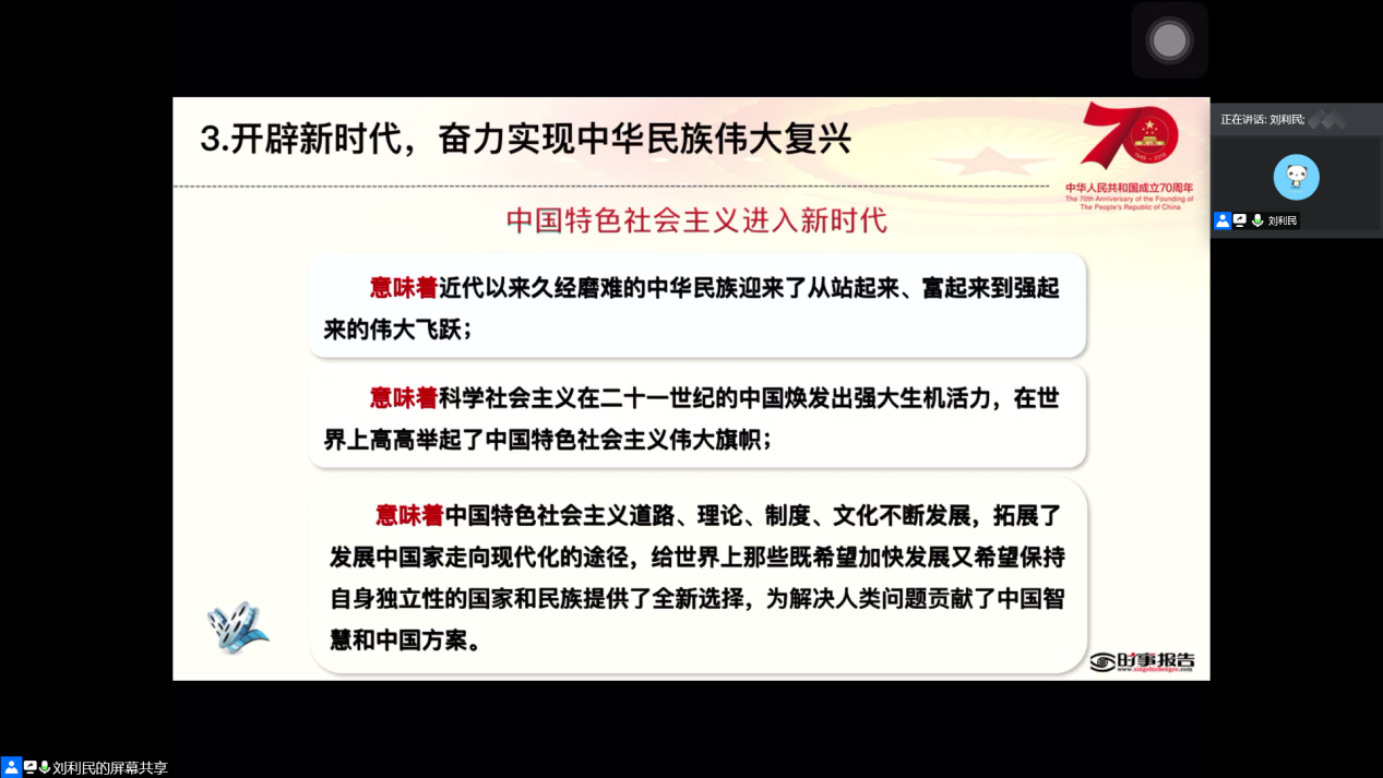 开班仪式结束后,经理刘利民老师为大家进行本期党课第一讲:《壮丽70年奋斗新时代》。刘经理带领大家回顾了中国共产党带领全国人民经过70年艰苦卓绝的斗争和奋斗铸就辉煌成就的艰辛历程;结合大数据、人工智能等高科技的发展,介绍了国家科技腾飞的70年;这70年,是中国共产党和全国各族人民智慧和劳动的结晶,党的领导是我们取得一切成绩的根本保证。新中国70年党的光辉历程,已经深深镌刻在中国共产党成长壮大、中华民族发展进步的历史丰碑之上。在刘经理的讲解中,参加培训的学员深刻感受到一代代共产党人的不变信念和坚持,对共产主义信念肃然起敬。