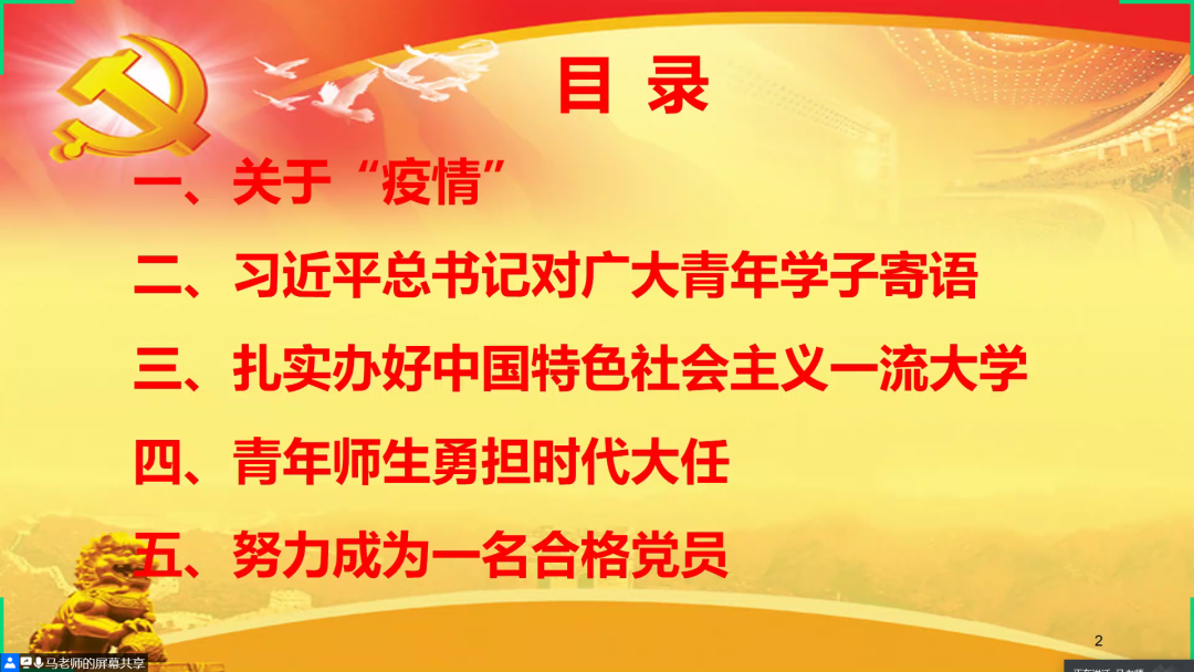 首先,马经理为同学们讲解了习近平总书记在疫情防控工作中提出的9个“要”和3个“强调”的相关内容,包括完善相关的法律,做好防控工作等,告诫大家应做到毫不放松,直到夺取疫情防控的全面胜利。马经理结合青年学子奉献担当、成长成熟的现实表现,勉励同学们树立远大理想、积极进取、勇于奉献。