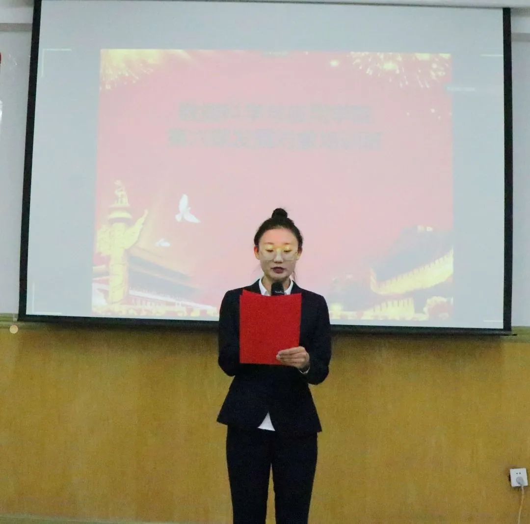 在庄严的国歌过后,主持人宣布第六期发展对象培训班正式开始。郭鹏老师希望发展对象要时刻铭记责任与担当,紧跟时代的步伐,通过各种途径锻炼自己,争取思想上入党,行为上向党组织靠拢,努力成为一名合格的共产党员。