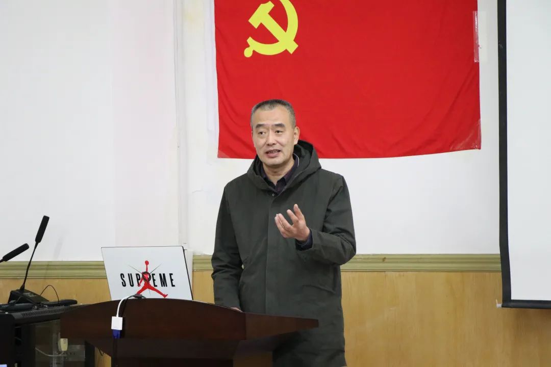 开班仪式结束后,党课第一讲在张斌斌老师的发言中展开。首先,他围绕“老员工入党的首要条件”、“正确的入党动机”、“入党意味着什么”、“如何成为合格的老员工党员”四个问题进行了讲解。