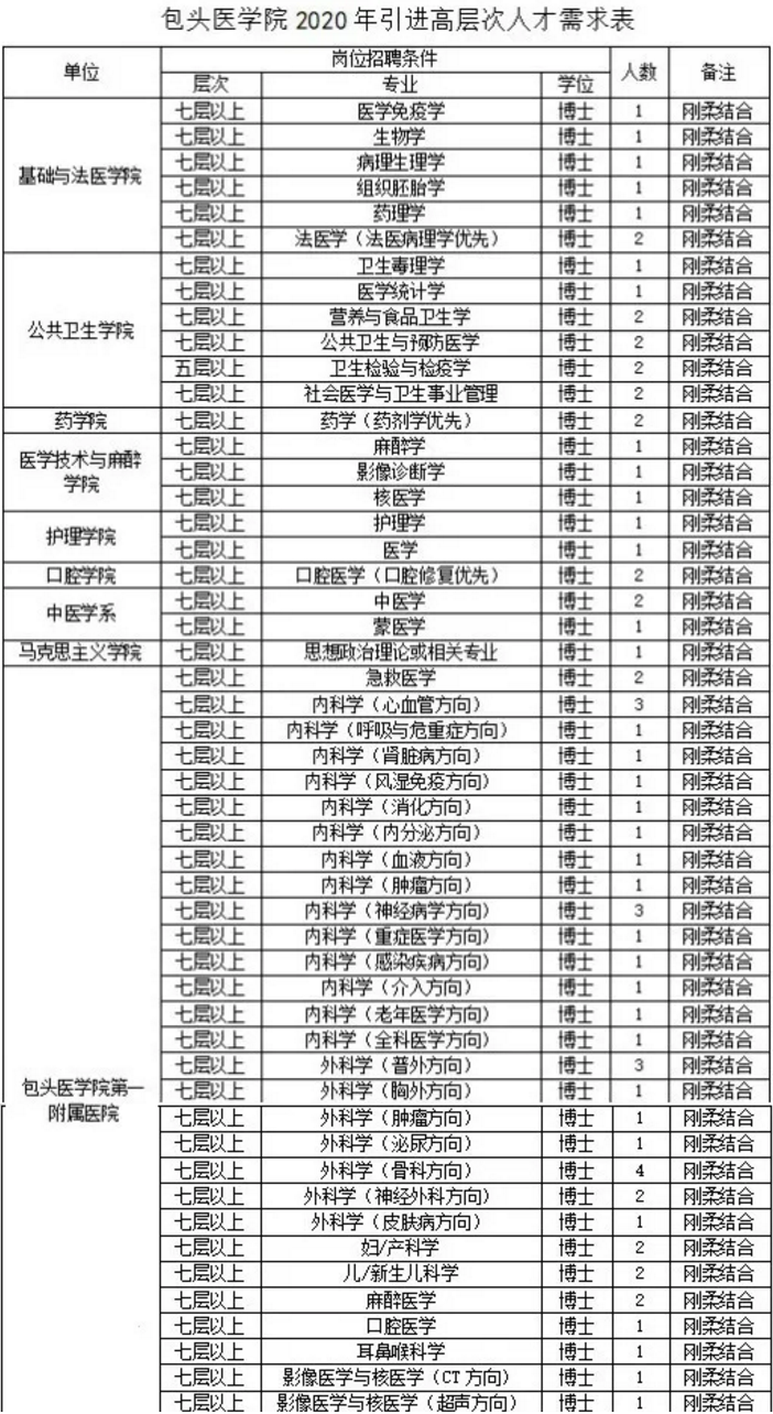 详情请浏览:包头医公司2020年高层次人才招聘110人!