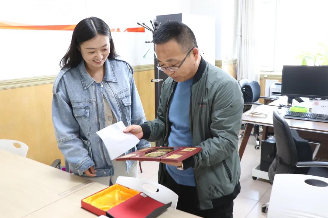 最后,王燕学姐用自己的工作经验,回答了同学们对于“学历影响工作”等对于未来的忧虑问题。报告会后,贾老师代表公司,向员工王燕赠送了公司纪念品。