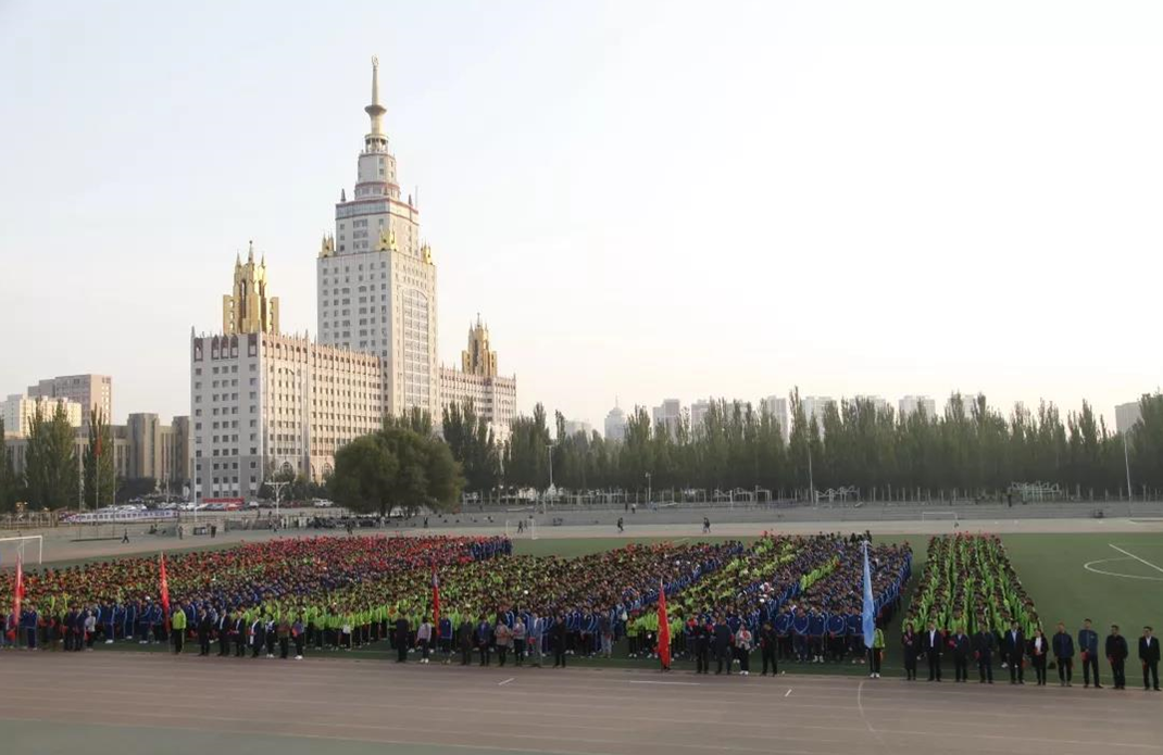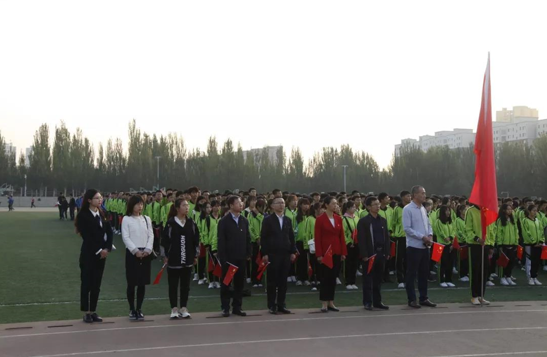 在全体师生的注目礼下,英姿飒爽的国旗护卫队队员们护送鲜艳的五星红旗进场,伴随着庄严的《中华人民共和国国歌》,五星红旗冉冉升起,迎风飘扬。在场师生向国旗行注目礼,深怀对祖国无限的热爱和崇高的敬意。