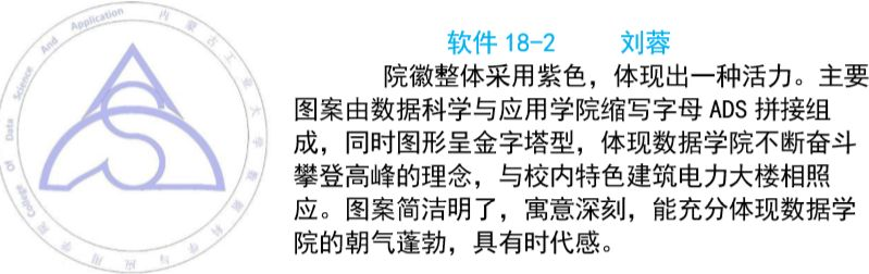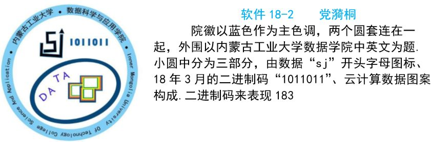 院徽设计得奖最佳设计奖软件17-4侯香宇二等奖软件18-2党漪桐信计18-2王欣宇三等奖数据18董宜软件18-2刘蓉软件18-1王东帅最佳人气奖软件17-1李丰