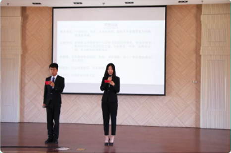 紧接着随着主持人宣布活动开始,20位院徽设计选手与9位海报设计选手陆续上台,对自己的作品进行讲解。他们仔细的介绍了自己的院徽及海报设计的设计灵感、过程和寓意,他们妙语连珠、用慷慨激昂的语气充分的调动起了现场的气氛。每一个图案每一个标识都表达了他们对三亿的热爱,将这份浓厚的爱用院徽、海报表达出来。赛后的问答环节为同学们带来很多欢声笑语。整个大赛过程中,同学们热情高涨,现场气氛激昂踊跃。评委们分别对其进行点评与打分。经过一番激烈的角逐,以下几位选手的作品脱颖而出。