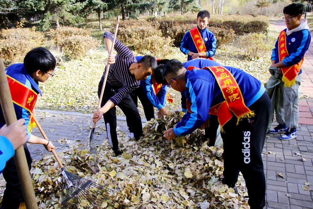 霜降已经过去,秋风瑟瑟吹响,10月28日下午2点服务部的同学们提前准备好了清扫工具,在指定地点集合,开始清扫堆积在路上的落叶。大家挥舞的工具和忙碌的身影,成为初冬校园中一道亮丽的风景线。经过大家整个下午的辛勤劳动,校园路面重新变得干净整洁。