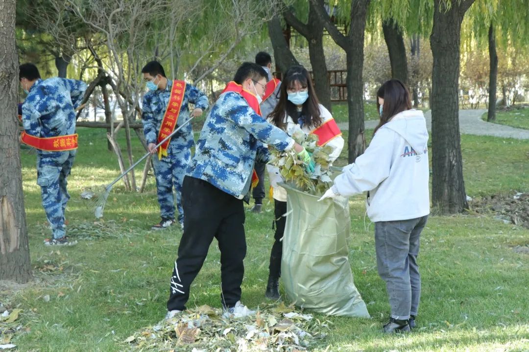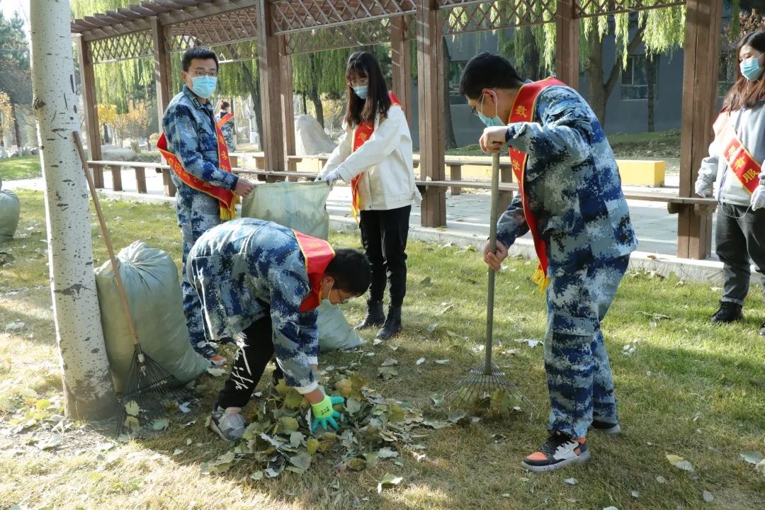 同学们挥舞的手中的工具激情澎湃地清扫堆积在路上的落叶。他们忙碌的身影,成为初冬校园中一道亮丽的风景线。经过大家一个上午的辛勤劳动,校园路面重新变得干净整洁。