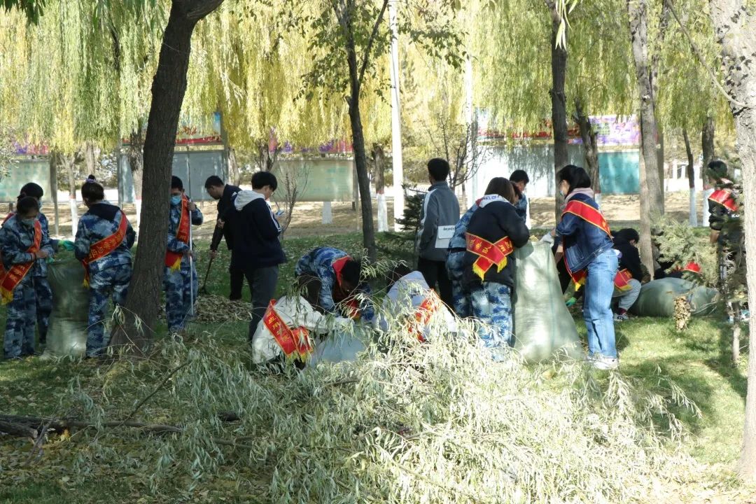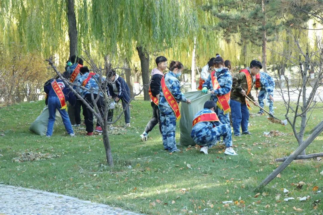 迎着绚丽朝阳,伴着清爽秋风,11月1日上午8:30,同学们拿着提前准备好的清扫工具,在指定地点集合待命。