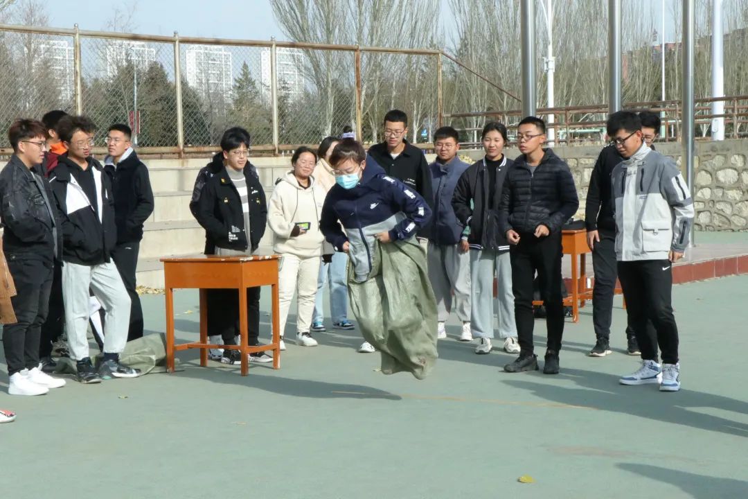 每队派出五位同学,依次套上布袋并拉到腰部。待比赛开始后,跳到对面和工作人员击掌后返回,然后下一个同学进行接力,率先回到起点的队伍获胜!