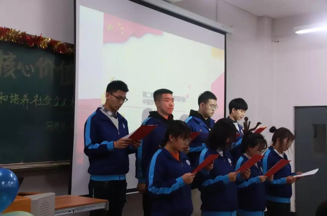 网络18-1团支部为进一步营造浓厚氛围,凝聚奋进力量,激发支部成员爱党、爱国家、爱校园的真挚情感,与12月5日,在教学楼 A107召开了以“我为核心价值观代言,培育和践行社会主义核心价值观教育”为主题的团日活动。