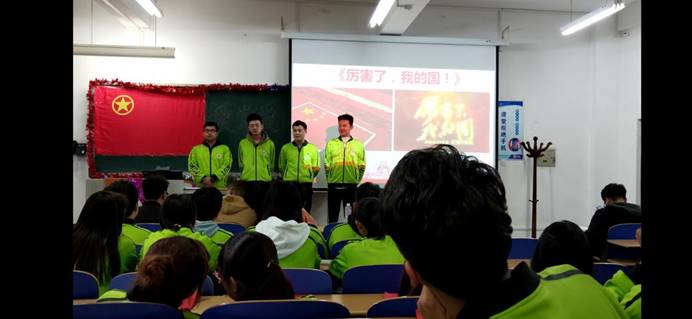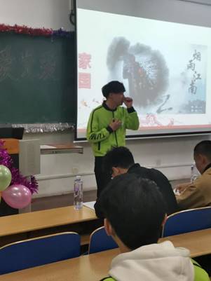 数据19-2团支部把团日活动的思想性、导向性与个人的成长需求结合起来,采用“点—线—面—体”的方法,变参与主体为活动的组织策划者,达到参与即受益的效果。此次活动分为两个篇章:“风向引领篇”之集体朗诵《崛起,中国!》,个人独唱《江南》,集体观影“一寸山河一寸血”。三句半《厉害了我的国》。“知行合一篇”之个人演讲《奇迹中国》、集体合唱《我和我的祖国》。通过这次活动,同学收获颇丰,也有很多感触,正如团支书总结所说的“我们出生在国家富强、科技发达的年代。但我们也有自己的使命感,也希望尽自己的努力,为社会做点什么。虽然我们刚刚与这个时代交手,或许我们的声音还有一些稚嫩,但是我们却足够热烈。我们有自信成为更具创造力的青年,这自信来源于我们开阔世界的开阔,来源于多元化生活的包容,更来自于祖国强大给我们带来的底气。”