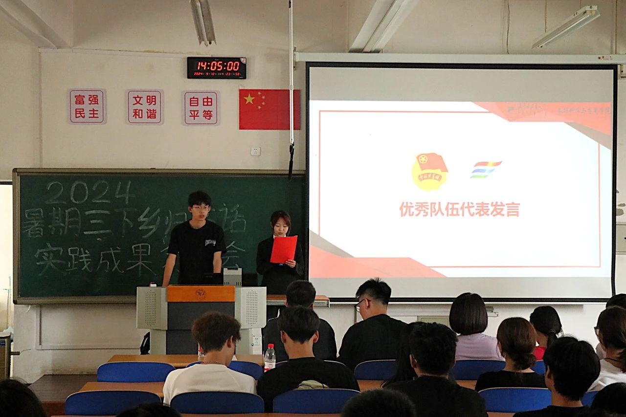 活动开始后,主持人向观众介绍了本次参与的嘉宾,并肯定了本次“三下乡”活动的成果及意义。接着,优秀队伍队长:数据22-2班张可孟同学,软件23-1班任宇昕同学,网络22-2班池晓慧同学上台分享了自己的实践经历,他们的付出为社会的建设提供了更强大的力量。