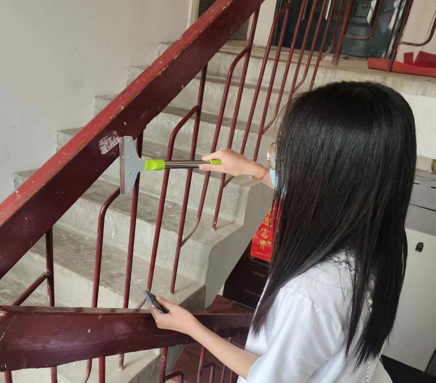 随后,在社区工作人员的带领下,全体成员来到毛纺厂家属楼小区,队员们分成两组,各自带好相应的工具,一组队员们来到绿化带区域,对绿化带区域的植物进行修剪,同时打扫所在区域内的卫生,拾捡垃圾。另一组队员们进入小区楼道内,清理小广告等,美化了楼道内的环境。