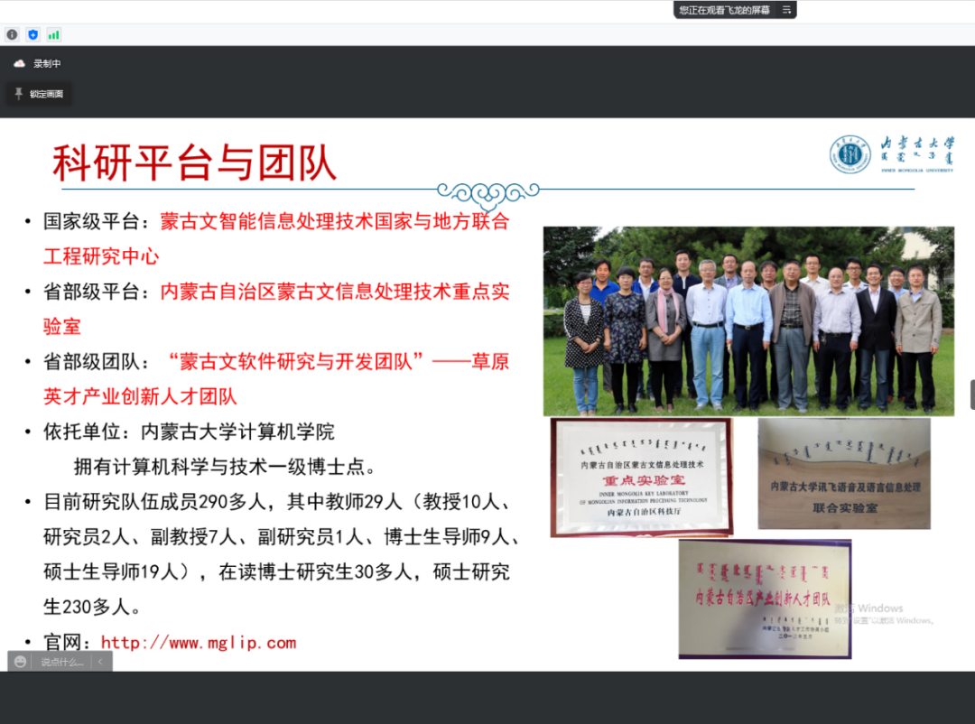 此外,飞龙教授依托于内蒙古大学计算机公司,对自己的团队做了一个简单的介绍。
