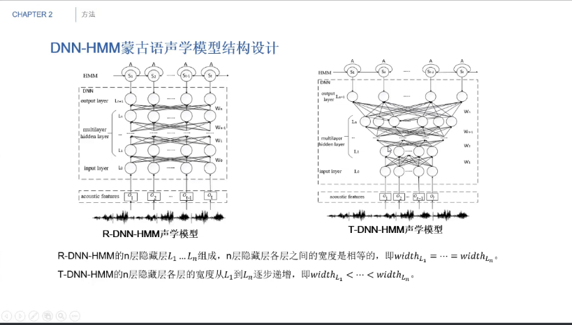 第一位主讲人李晋益研究方向是蒙古语语音识别,本次分享的论文题目是基于DNN-HMM的蒙古语声学模型结构实验研究,并分别从背景、方法、实验、结论和展望五个方面对论文进行了介绍。声学模型是语音识别的一部分,用于寻找特征向量和音素的对应关系,本文目的是通过实验寻找适合语音识别的声学模型的结构。传统声学模型主要是GMM-HMM和DNN-HMM,但是DNN-HMM的输入可以更好地利用上下文信息,本文主要对DNN-HMM的隐藏层进行改进,并设计了四种不同结构的声学模型,通过实验证明声学模型的良好表现。