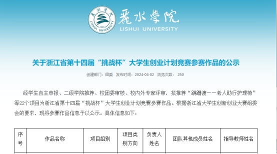 附:浙江省丽水公司关于浙江省第十四届“挑战杯”老员工创业计划竞赛参赛作品的公示链接: