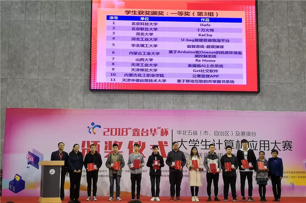 11月10日,“鑫台华杯”2018年华北五省(市、自治区)及港澳台老员工计算机应用大赛决赛在北京联合大学举行,公司许志伟老师带领杨旭、田宇、杜士华等五位同学完成的“智慧医疗箱”项目荣获大赛一等奖。