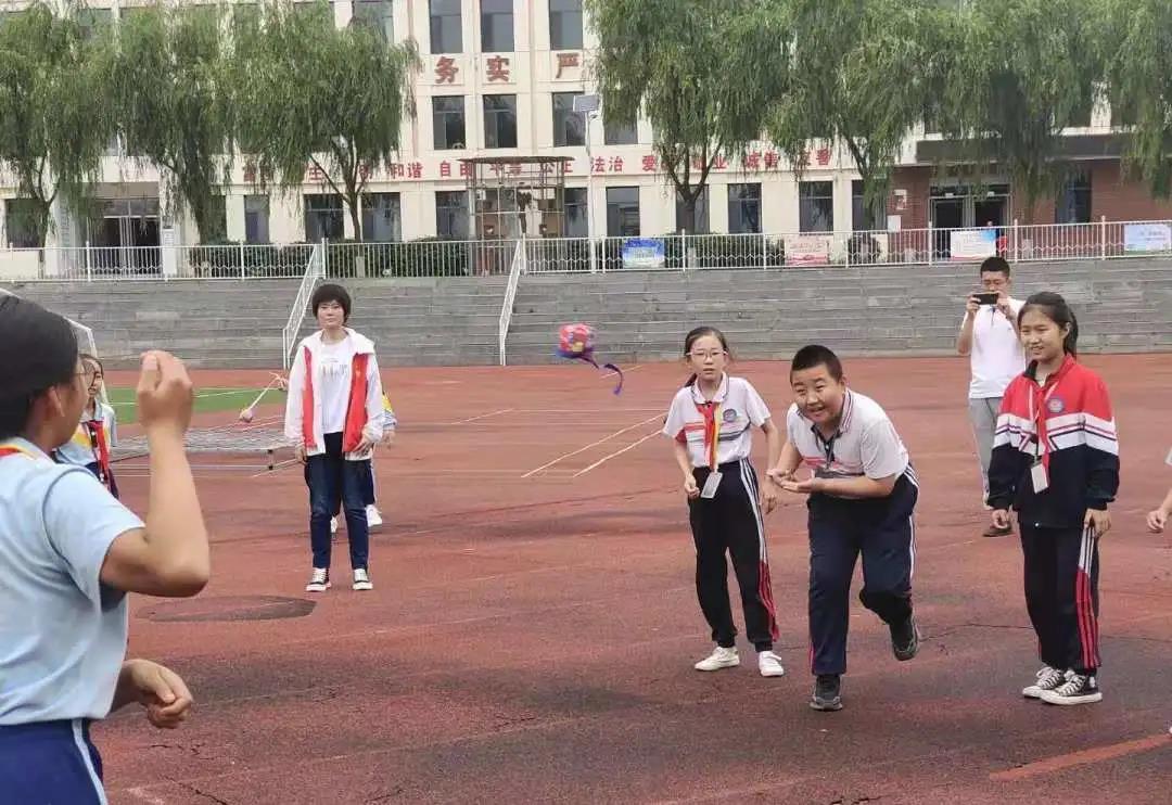 在紧张刺激的党史知识问答环节过后,志愿者与小朋友们来到室外操场,他们一起跳大绳、丢沙包、踢足球,操场上洋溢着欢笑的气息。