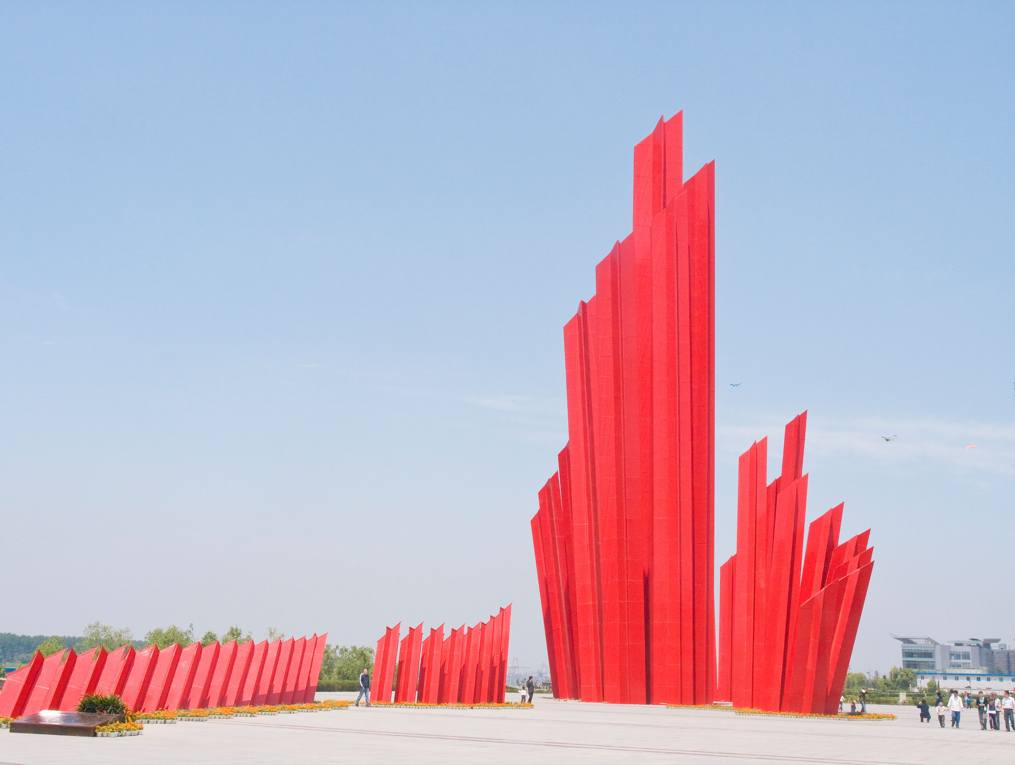 面向公众,红色雕塑还要具备独特的文化内涵。对此,南京渡江胜利纪念馆广场上的群雕《千帆竞渡》提供了启示。6组、49根高度不一的“风帆”,以抽象形式和符号化语言让作品充满现代美感,成为南京现代城市建设的一部分;“主桅杆”的高度设计和向江面倾斜的整体造型,不仅寓意渡江战役打响时间,还增强了作品的力度和动感,展现出百万雄师过大江的豪迈气势。直柱状的造型,更象征着坚强向上、不屈不挠的精神,鼓舞着人们砥砺奋进。