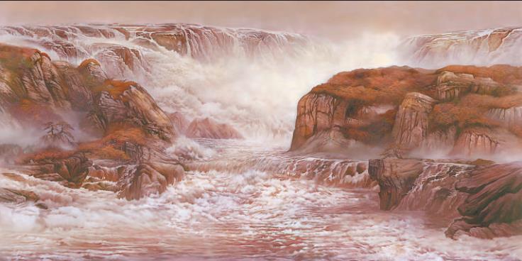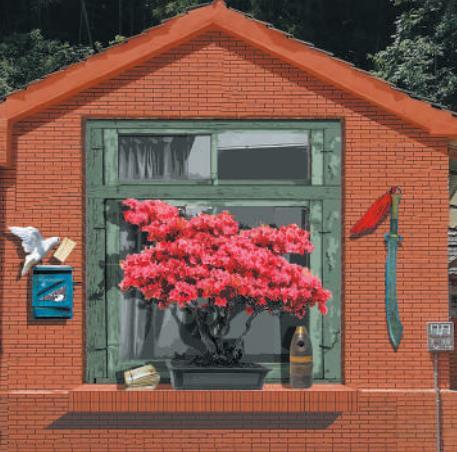 安徽省六安市霍山县诸佛庵镇丙烯壁画《窗前的杜鹃花》,中国美术公司绘画艺术公司师生集体创作