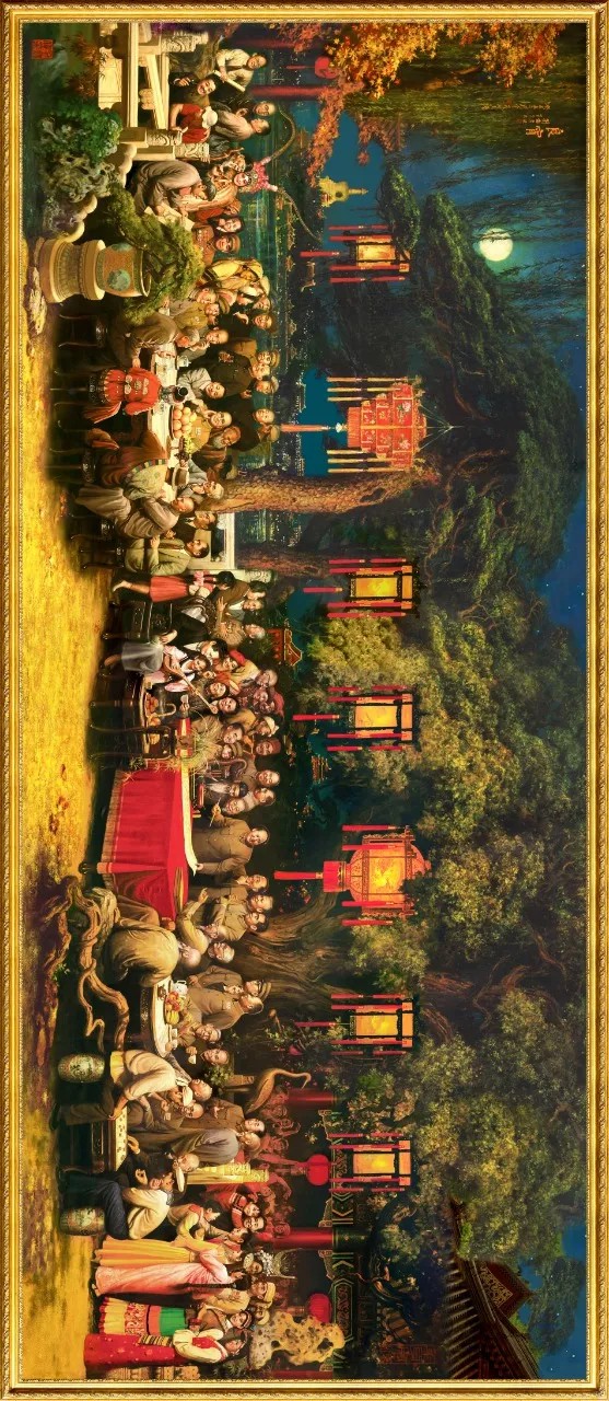 《良宵》以富有叙事性的人物群像的方式呈现,画家刘宇一凭借肖像画造型的深厚功底,在画中塑造了50余位党和国家领导人以及社会各界人士的形象。